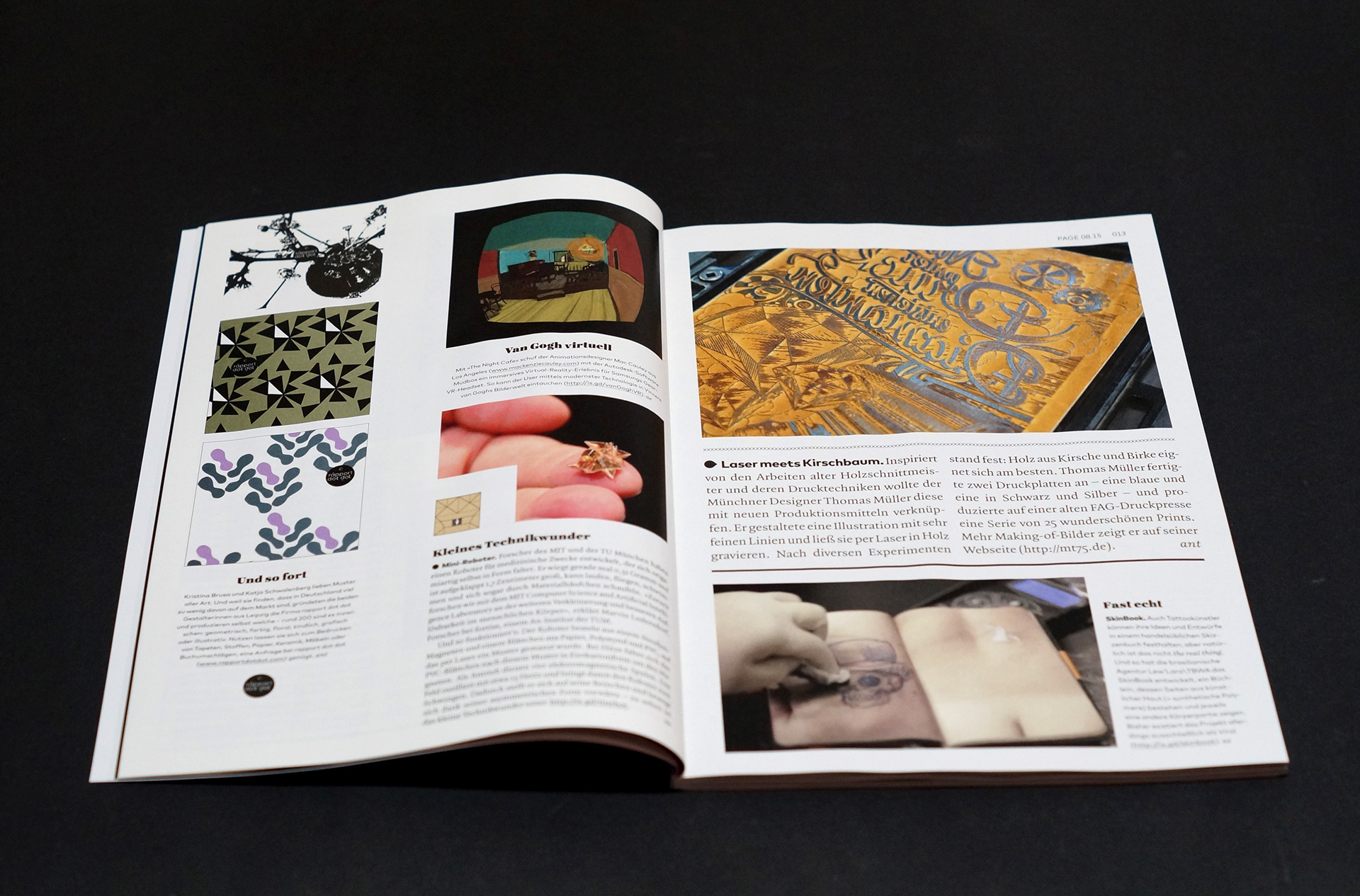 Eine andere Art der Xylography Inspiriert durch die Arbeiten alter Holzschnittmeister und Ihren Drucktechniken wollte ich dies mit neuen Produktionsmitteln verknüpfen. Die Illustration ist mit sehr feinen Linien gestaltet worden. Ein Laser gravierte die Illustration in eine Holzplatte. Die Wahl des richtigen Holzes musste zuerst gefunden werden, nur ein hartes und starkes Holz hält dem hohen Anpressdruck stand. Es wurden zwei Druckplatten angefertigt. Die Drucke wurden mit einer alten FAG Druckpresse produziert und die Serie ist auf 25 Drucke begrenzt. Ich bedanke mich für die tolle Unterstützung insbesondere bei der Druckerei Höflich, Offene Werkstatt, Beate und Peter Dietz. In dieser Druckerei besteht die Möglichkeit an den Maschinen zu arbeiten und eigene Projekte umzusetzen. Offene Werkstatt Desweiteren bedanke ich mich als Fablab-Mitglied an die Bereitstellung des Rayjet Lasers der Firma Trotec, der allen Fablab-Mitgliedern zur Verfügung steht. Natürlich darf das Fablab München nicht vergessen werden. Thank you for your attention! Danke fürs Betrachten!